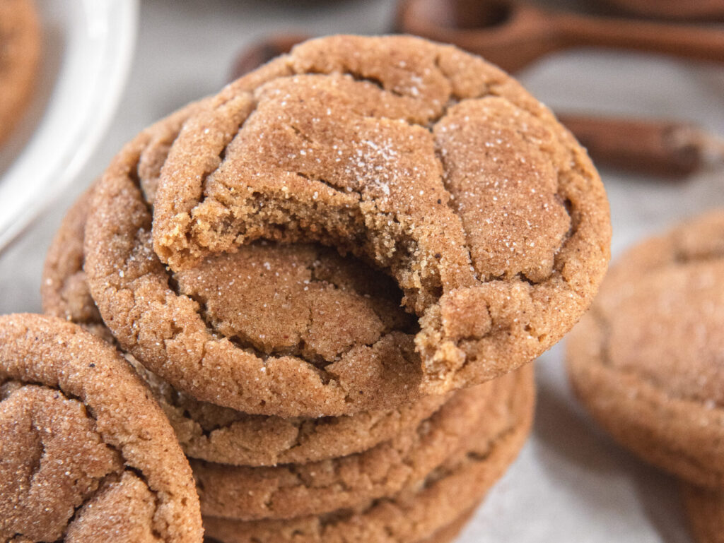 - In the bowl of a stand mixer (or using a hand mixer), beat shortening, brown sugar and granulated sugar on medium-high until light and fluffy, about 3 minutes. Add molasses, egg, vanilla and fresh ginger. Beat until well combined, about 1 minute. Scrape down the sides and bottom of the bowl as needed.