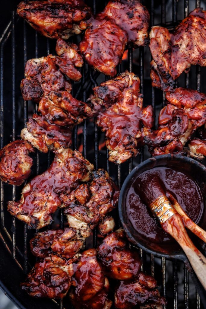 - Flip the thighs over again and brush with ¼ cup of the BBQ sauce. Cook 3 minutes.
